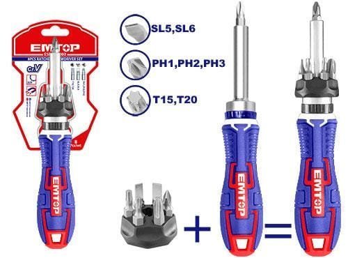 EMTOP TOURNEVIS CLIQUET 8PCS ESDRH0802